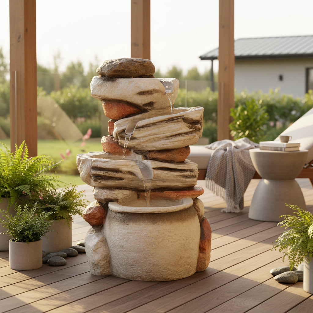 This small round fountain offers a tranquil water feature ideal for compact spaces, blending seamlessly with a variety of interior and exterior styles. Its minimalist design enhances any setting, providing soothing sounds that promote relaxation and calmness at home or in the garden. Crafted from durable materials, this fountain requires minimal maintenance while maintaining its elegant appearance over time. Perfect for creating a serene atmosphere, it is both practical and aesthetically pleasing, making it an excellent addition to your living environment.